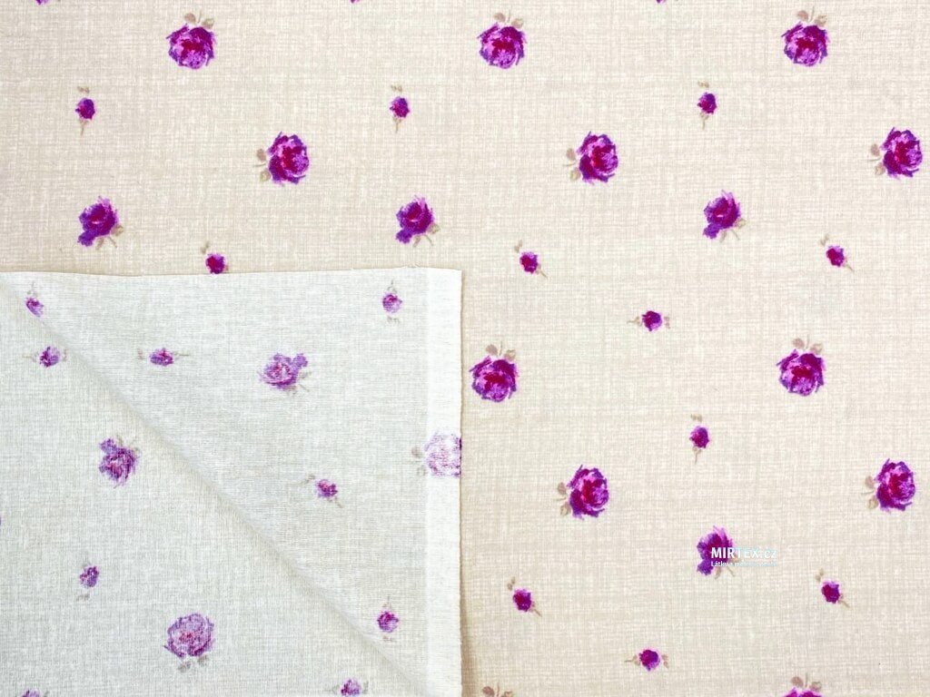 Látka FLANEL 150/13931-1 Drobné květy fialovo-béžové šíře 150cm