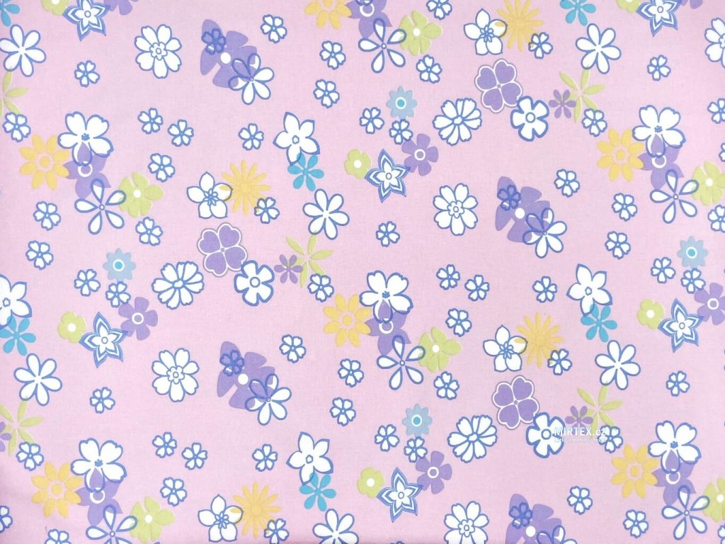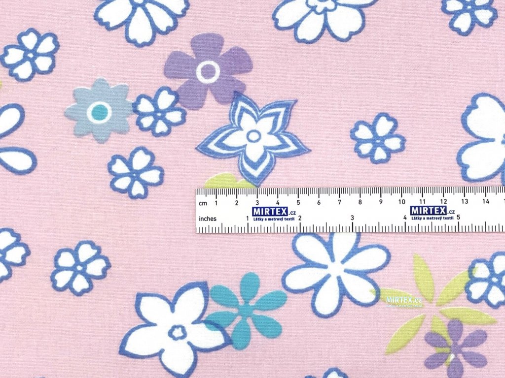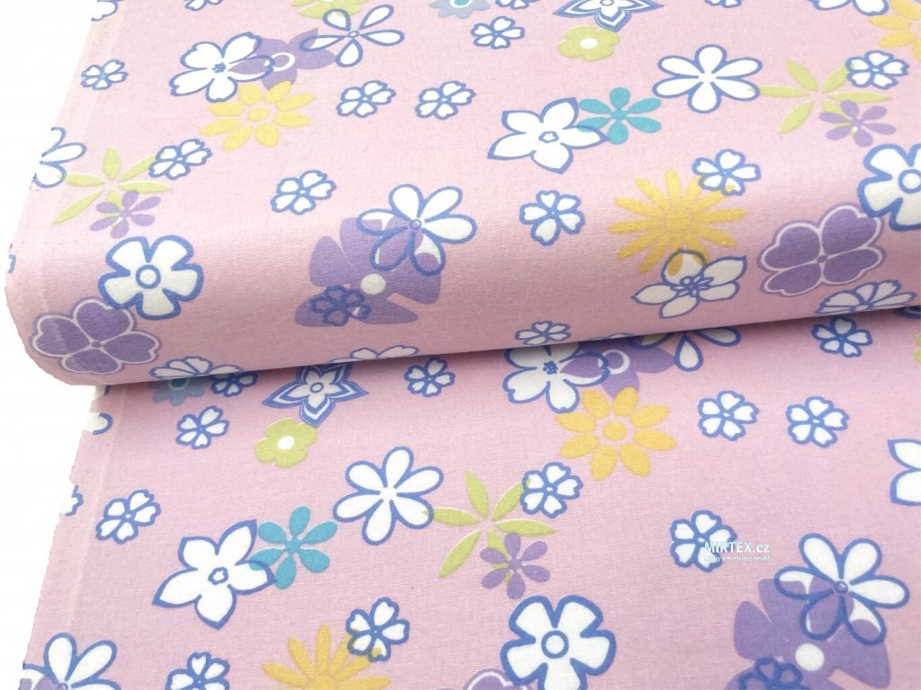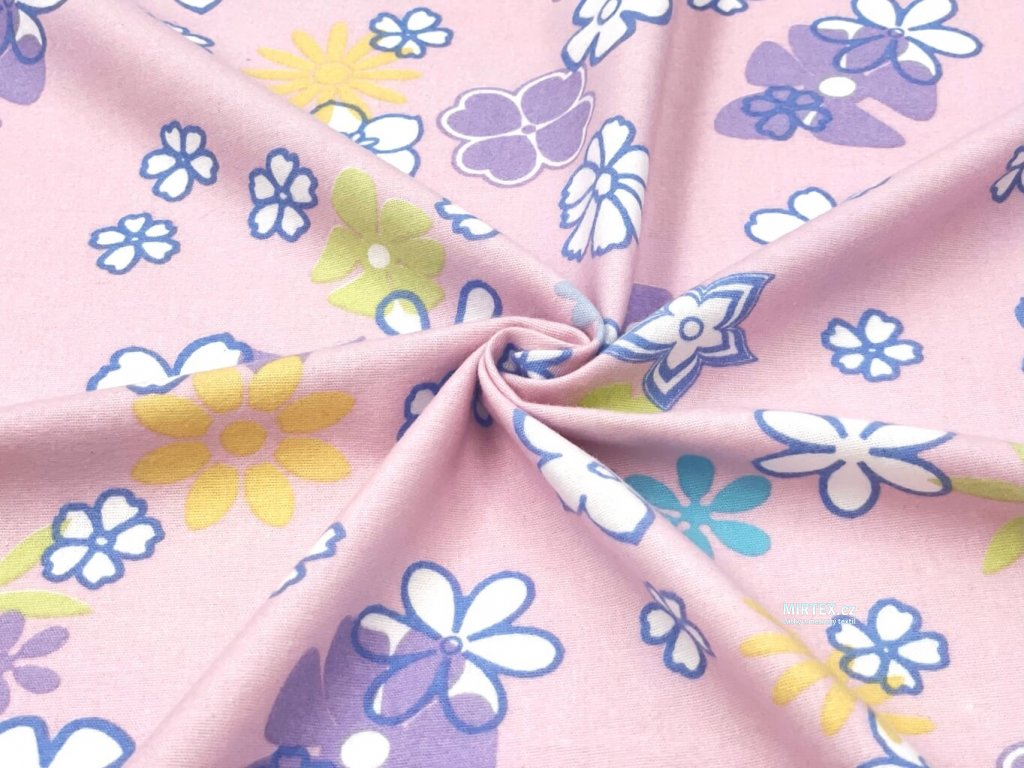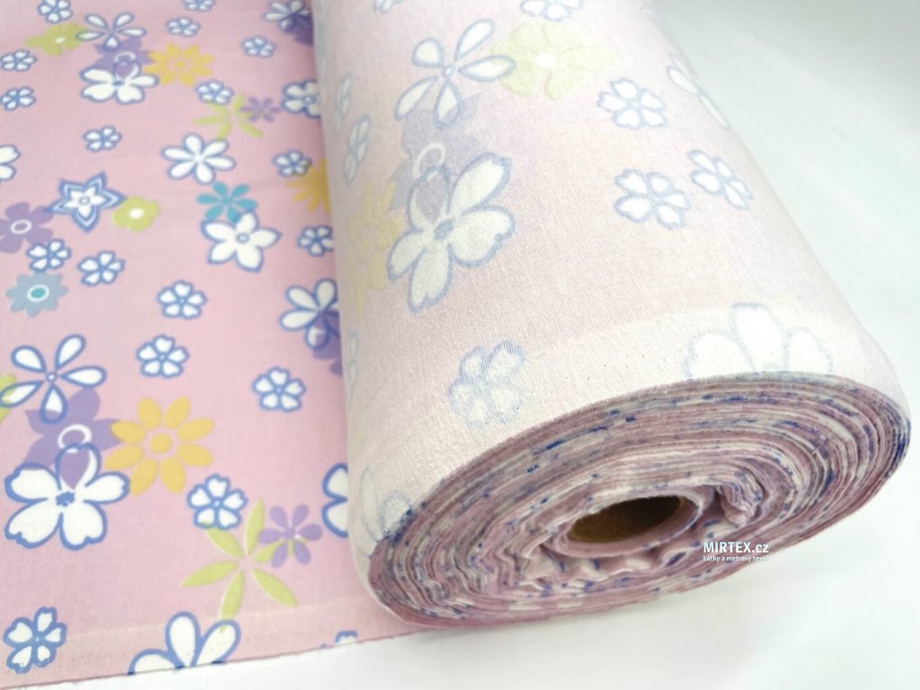Látka FLANEL 150/14118-1 Pětílistek květy na růžovém šíře 150cm