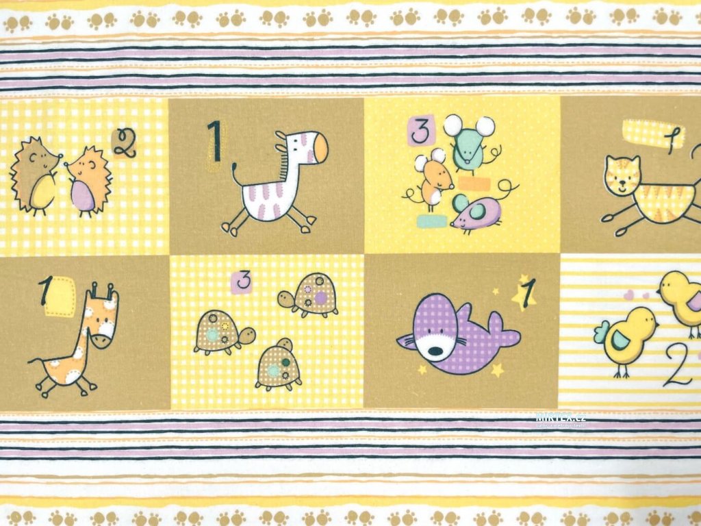 Barva a vzor: Dětský motiv s roztomilými zvířátky na béžovém podkladu.