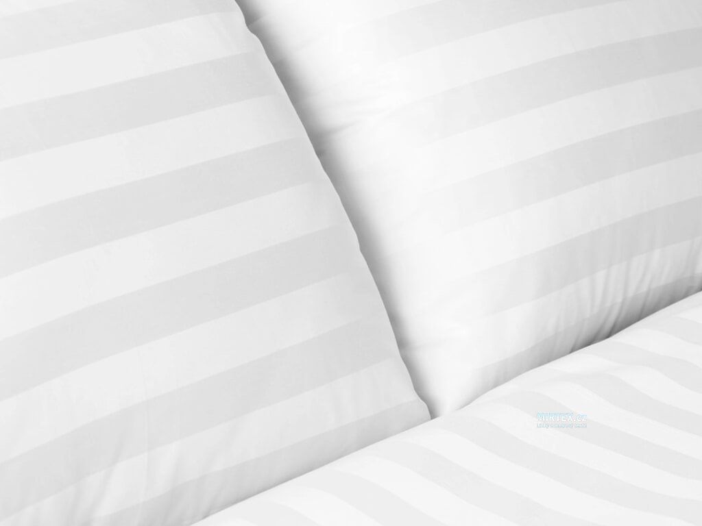 Barva a vzor: Bílá – elegantní a čistý vzhled s podélnými reliéfními pruhy 20 mm. Struktura vzniká změnou směru tkaní atlasové vazby, což vytváří atraktivní optický efekt.