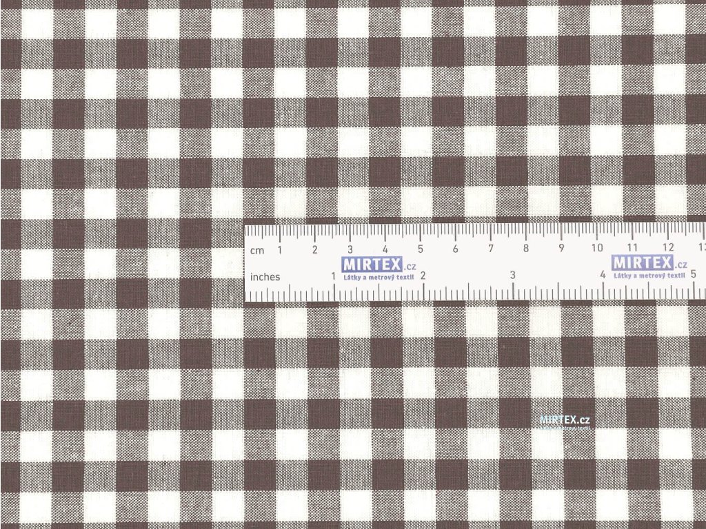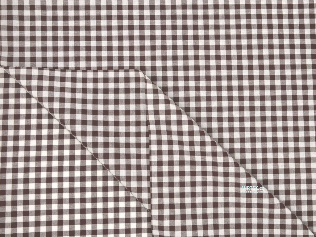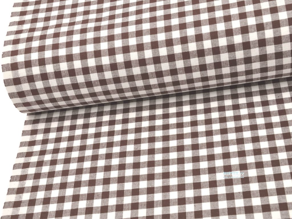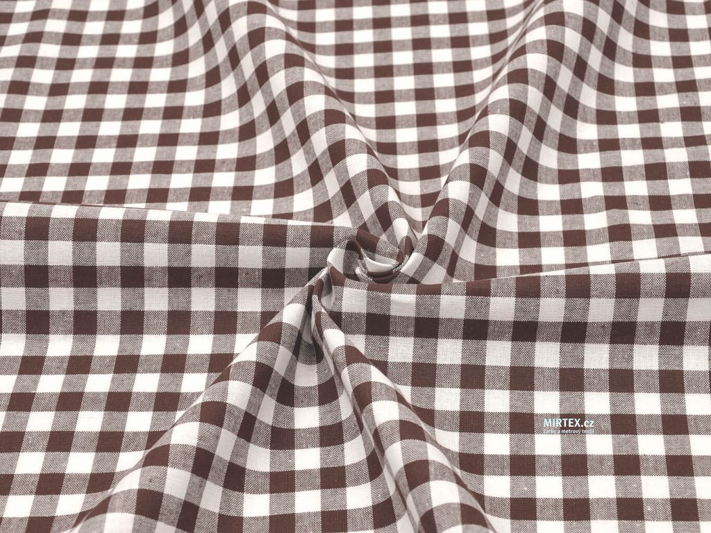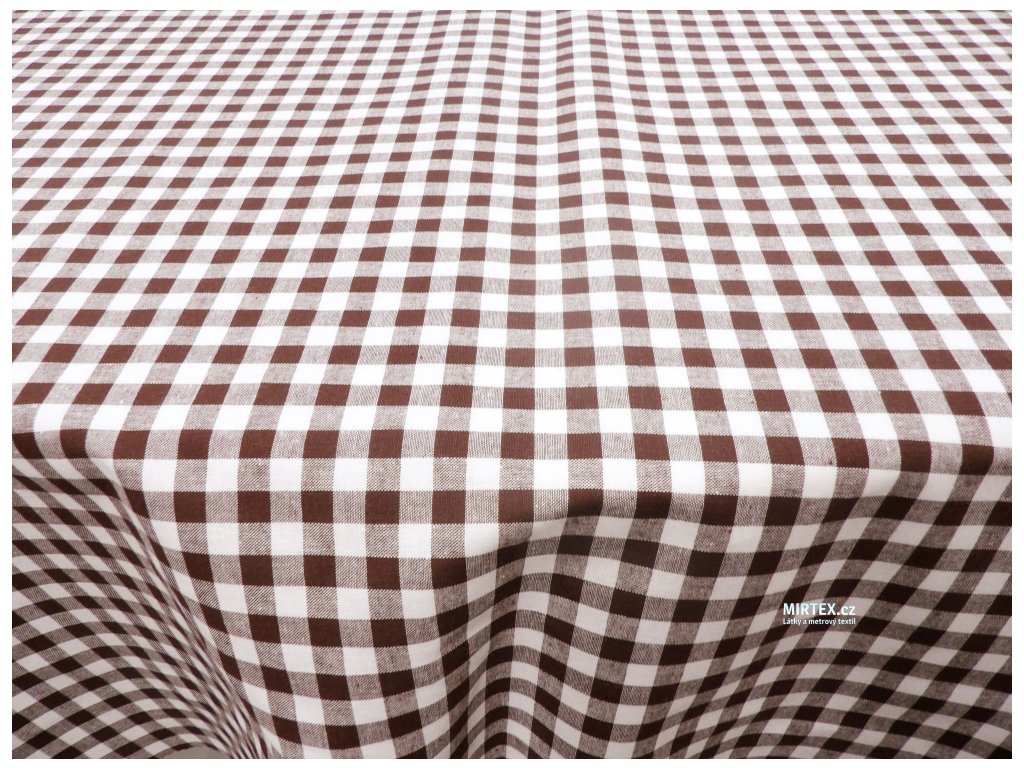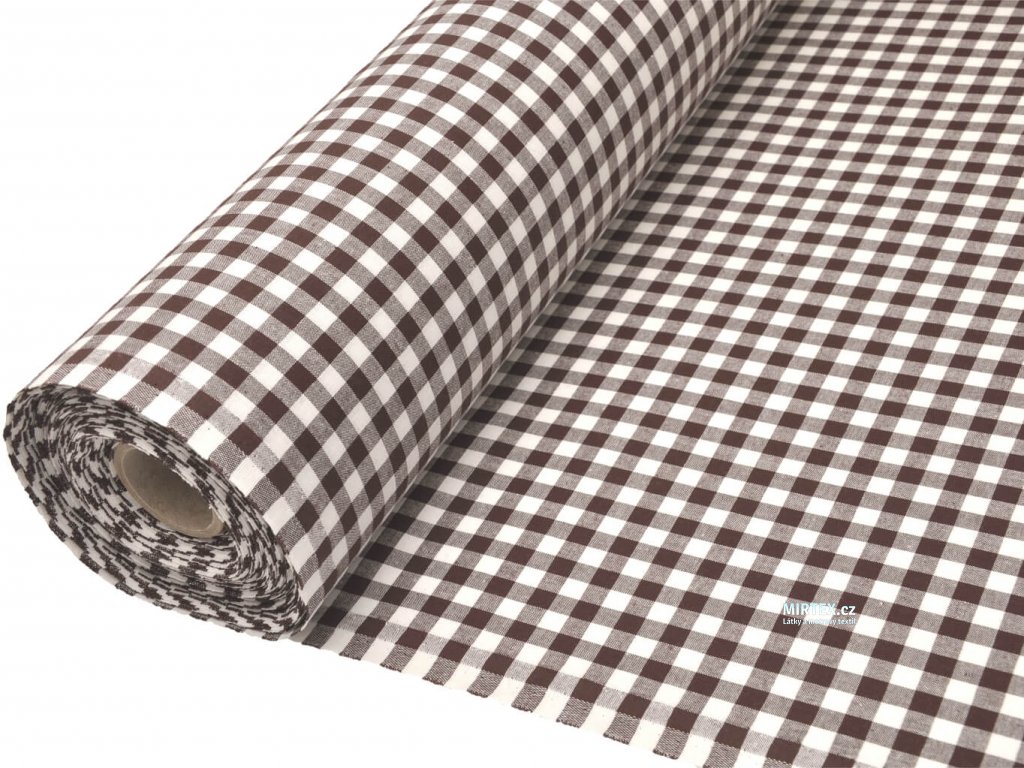 Kvalitní bavlněná žakárová tkanina v plátnové, pestře tkané vazbě s hnědo-bílou kostkou o velikosti 8–10 mm, určená především pro výrobu ubrusů, zástěr, závěsů, retro povlečení a dalšího kuchyňského a domácího textilu.
