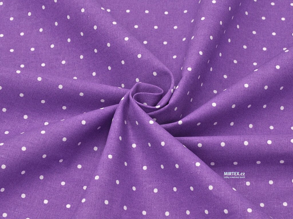 Plátno DOMESTIK 145/20109-2 Fialový podklad Puntíky 2mm šíře 150cm
