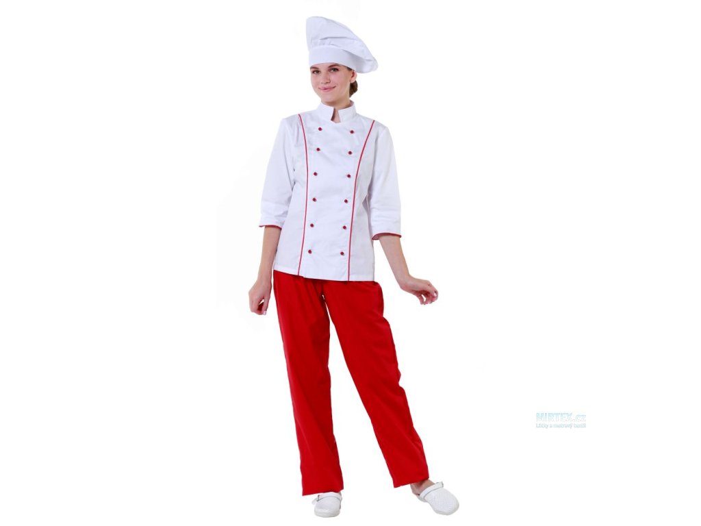Barva: Červená – výrazný a energický odstín, který dodává výrobkům živý a profesionální vzhled vhodný pro různé druhy profesního oděvu.