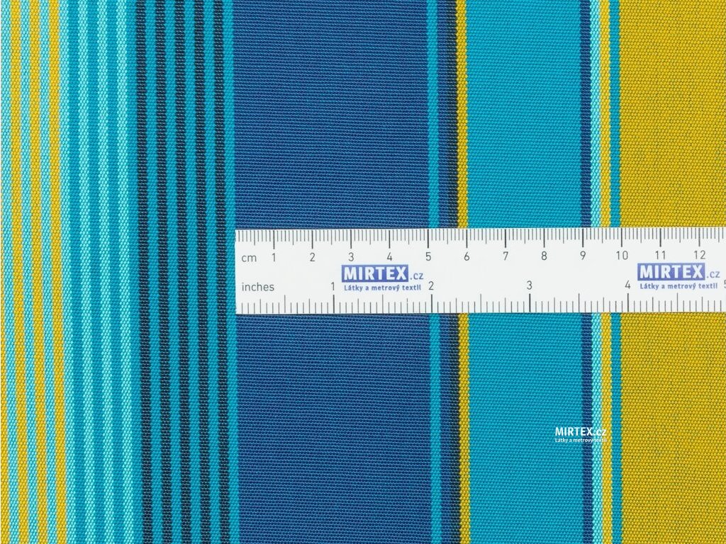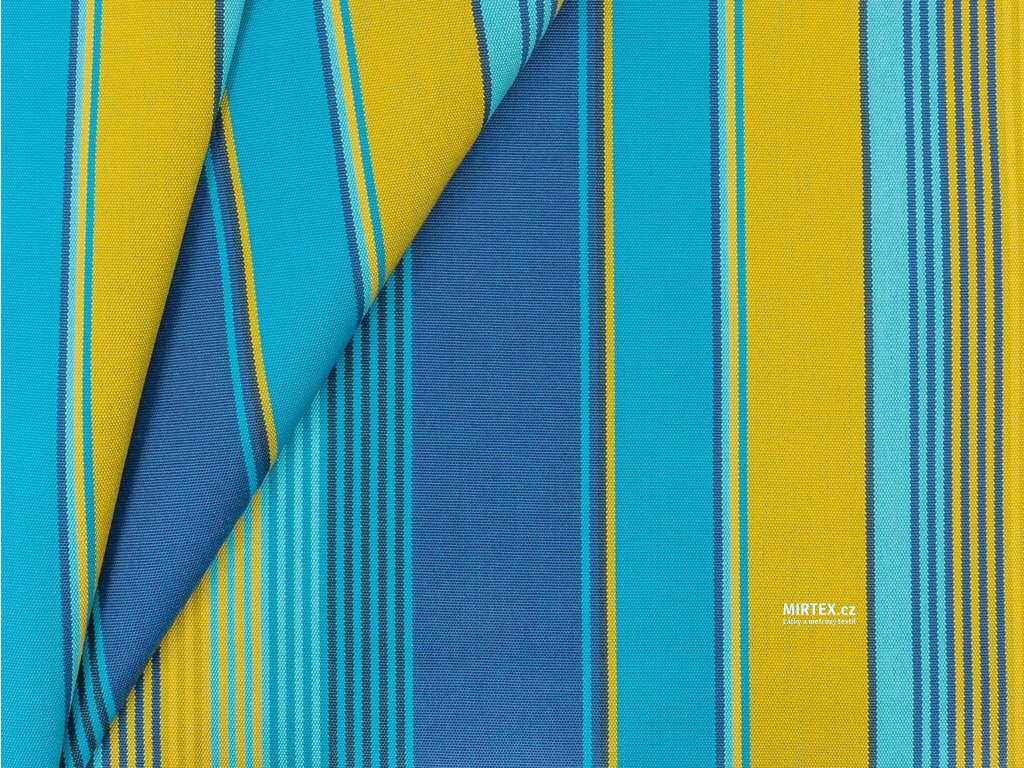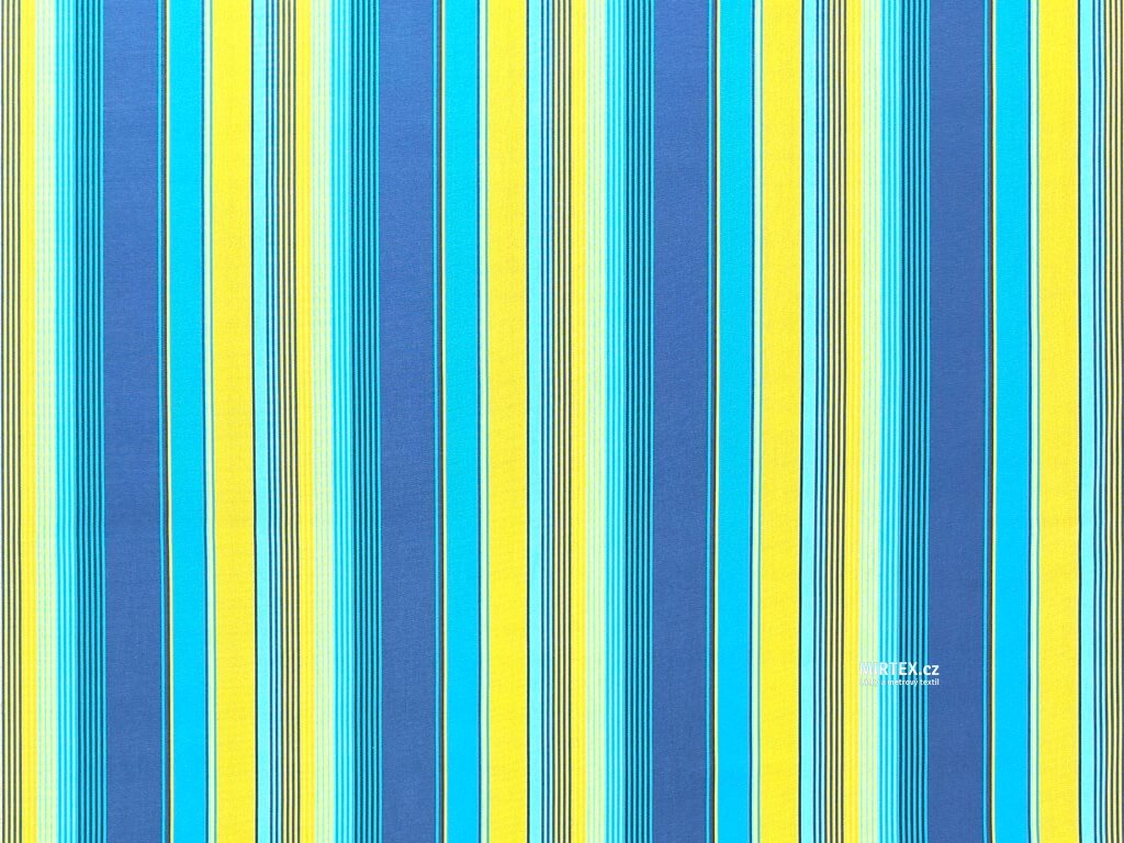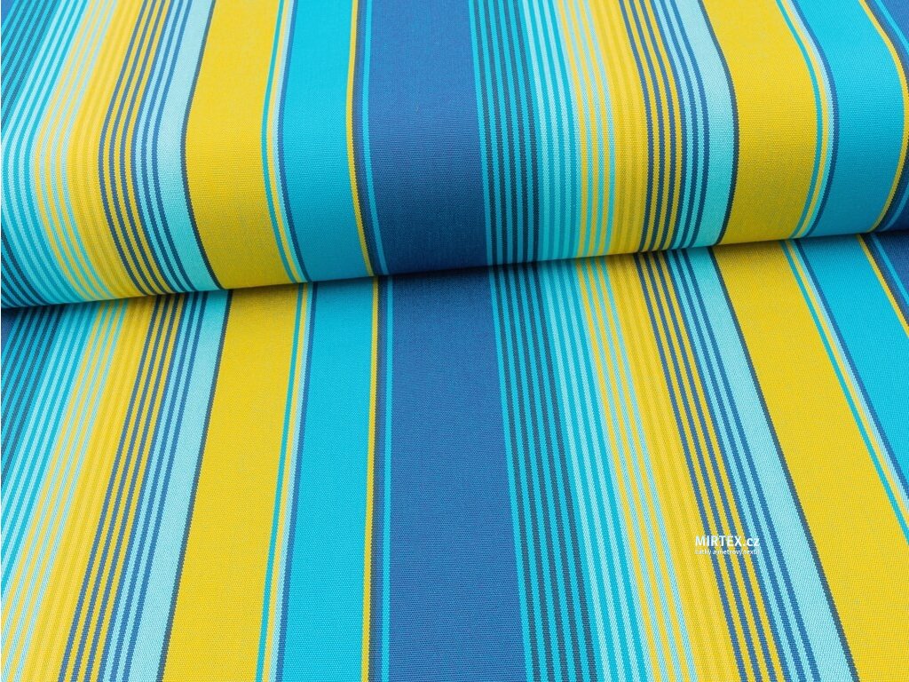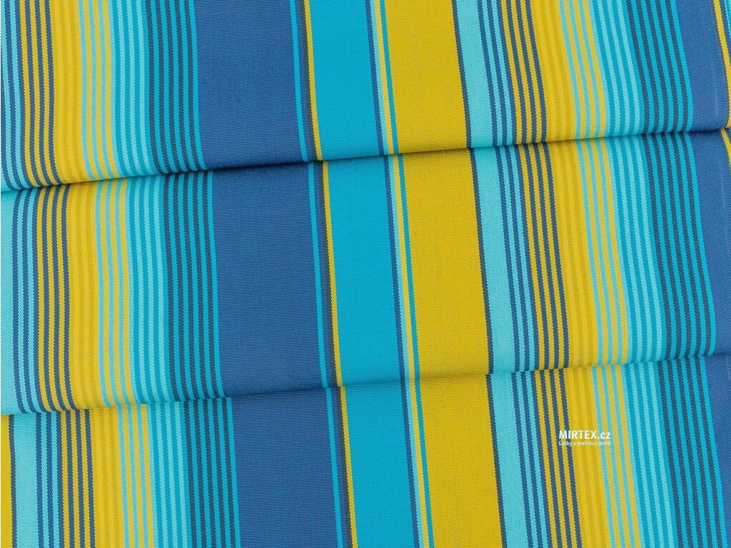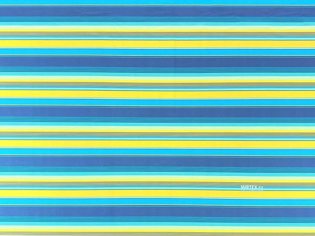 Tkanina TENDA SOLE CARIBE 210/404 Žluto-modro-tyrkysové pruhy šíře 160cm
