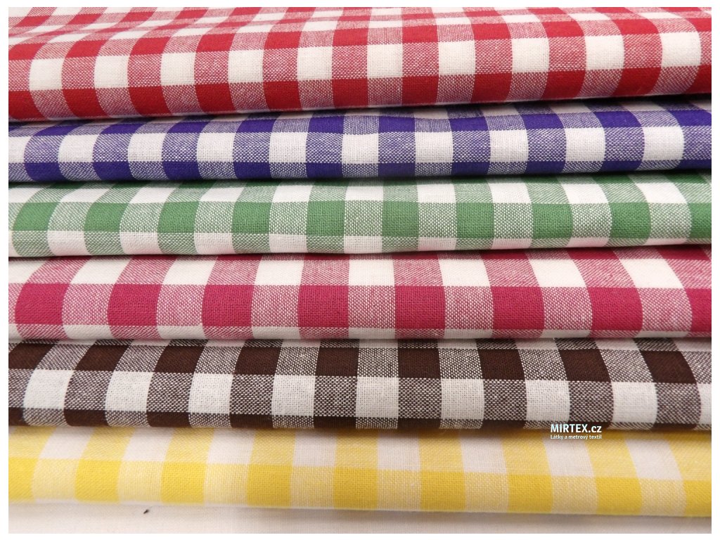 Kvalitní bavlněná žakárová tkanina v plátnové, pestře tkané vazbě s žluto-bílou kostkou o velikosti 8–10 mm, určená především pro výrobu ubrusů, zástěr, závěsů, retro povlečení a dalšího kuchyňského a domácího textilu.