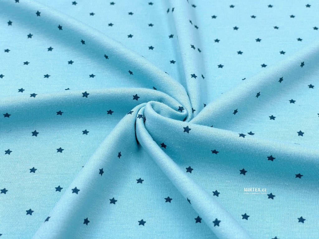 Látka úplet malé hvězdičky modrá šířka 196 cm