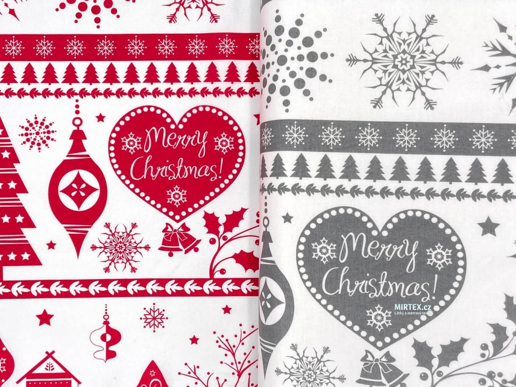 Plátno DOMESTINO 120/ 21942-1 Vánoční ozdoby/vločky šedé na bílé šíře 160cm Zbytková metráž