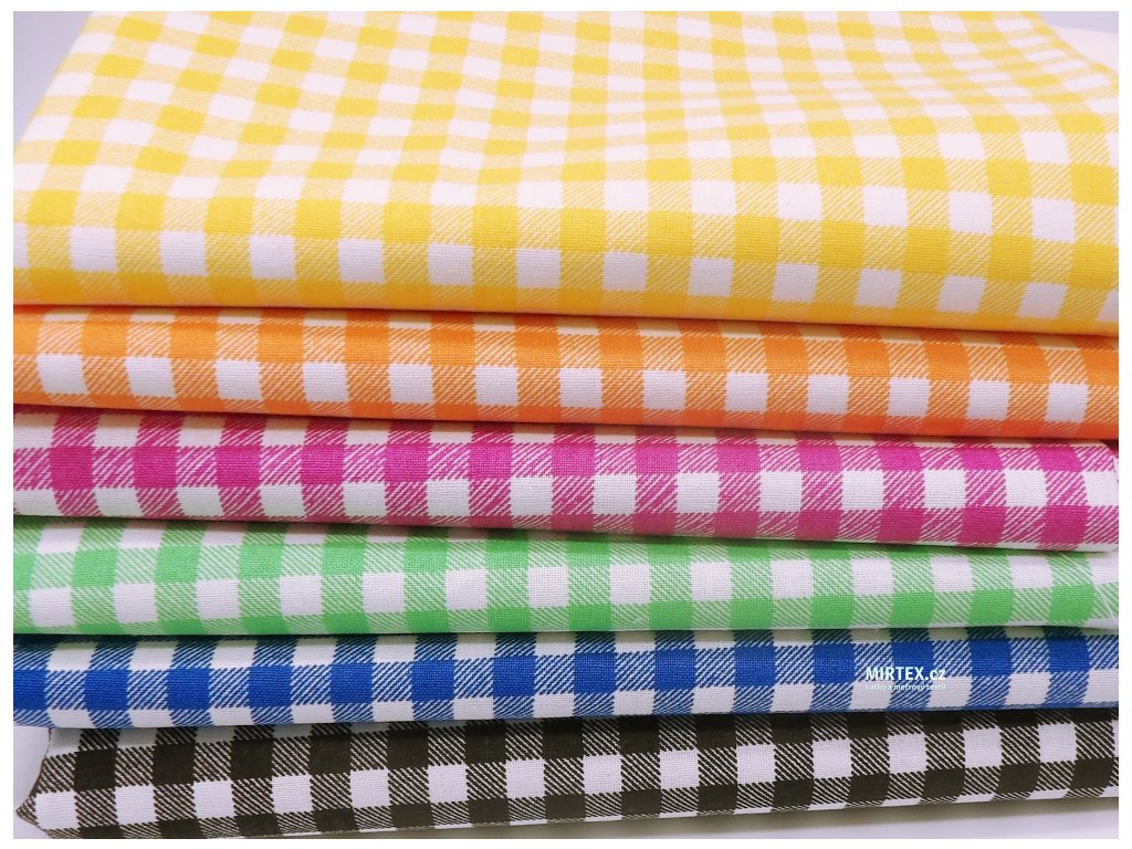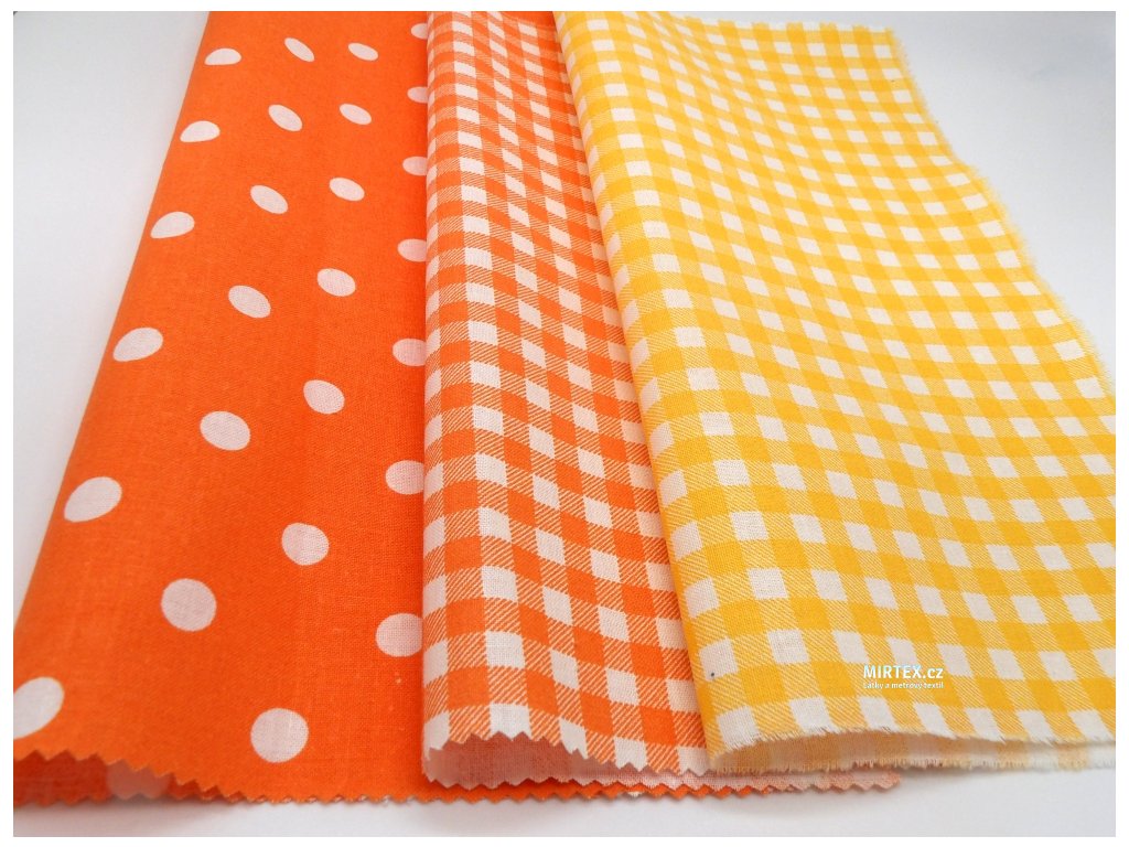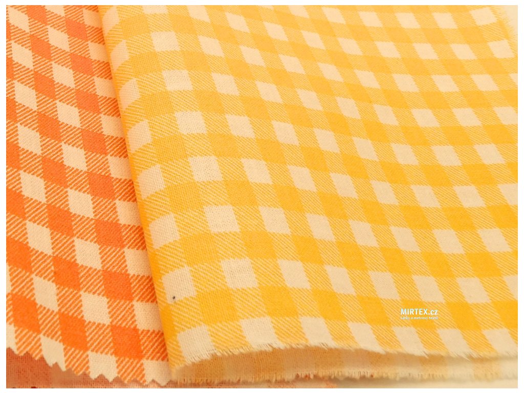 Plátno DOMESTIK 145/21375-6 Káro pomerančově žlutě kostky 7mm šíře 150cm Zbytková metráž